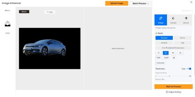 Step 2: Go to Workspace and add the picture you want to make bigger. As per your own preferences and needs, make the required changes to the settings. Click the “Start to Process” button when you’re done making the changes.