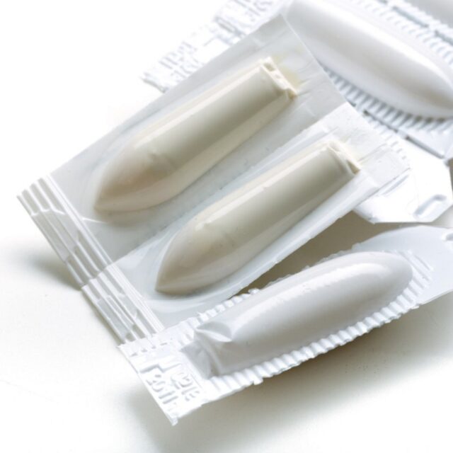 Vaginal suppositories are special cone-shaped medications that people apply to the vagina. You can apply the suppository by yourself or seek help from a caregiver/a loved one. The suppository application is done using a special applicator. Once it is inserted into the vagina, the suppository melts and is absorbed into the body.