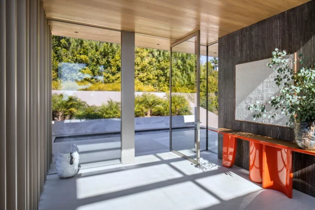 Pivot doors have hinges installed at the top and bottom of the door, allowing it to pivot open and closed. They can be designed to swing in or out, making them highly customizable. Pivot glass doors appeal to modern architects as they can create a focal point and serve as a room partition.