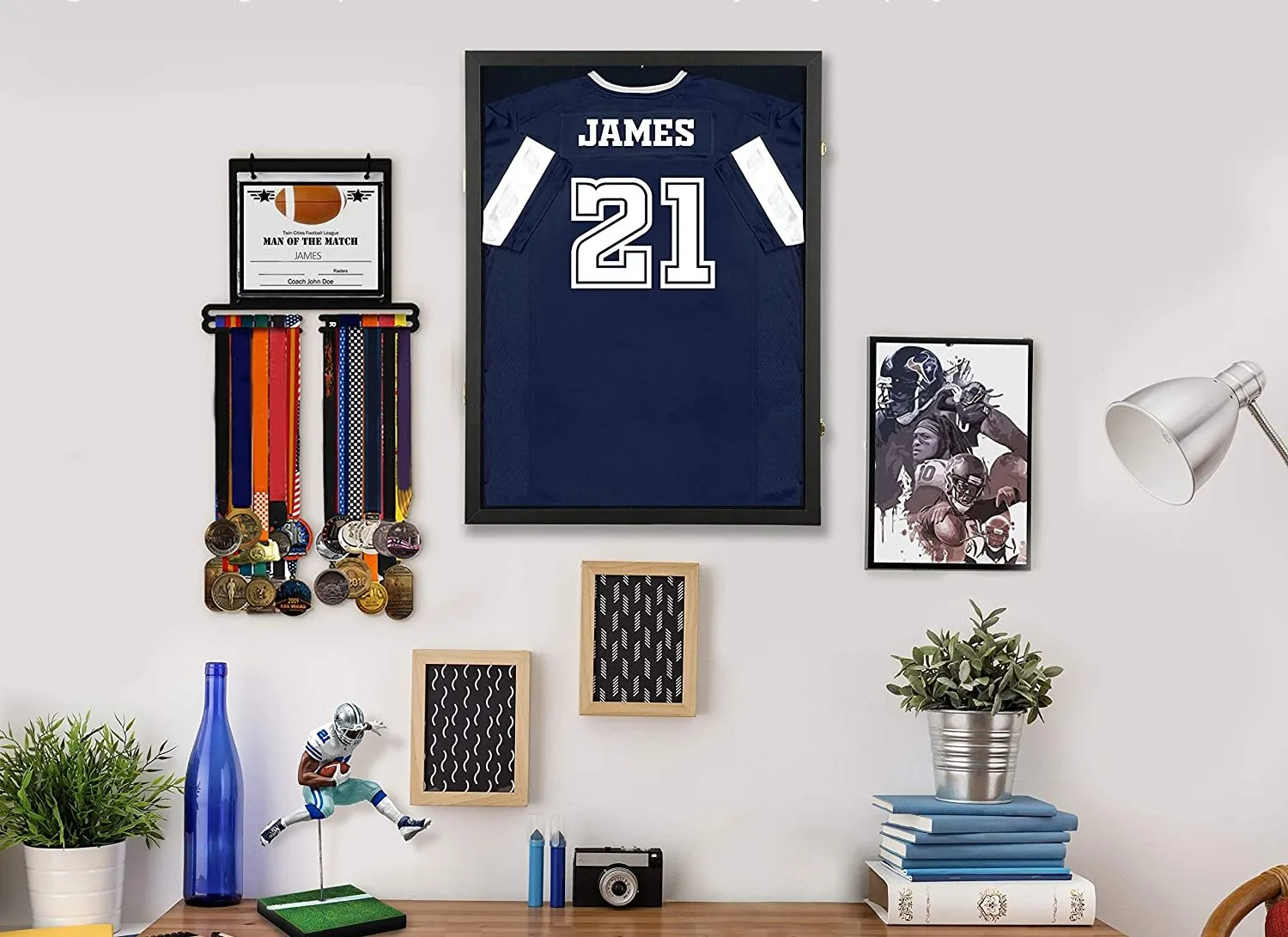 Also, you should opt for UV-protection glass which will secure that the jersey will stay in a perfect state. Besides that, the background can make a difference. The display will be more impressive if you match the background with the color of the shirt.